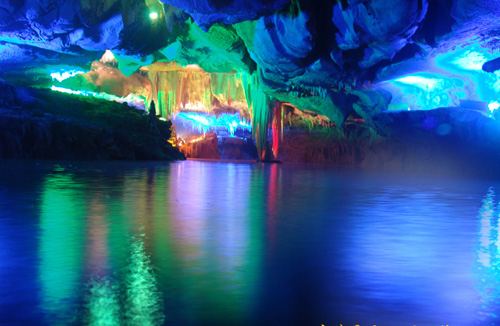 巖洞年輕、水質(zhì)純凈、水源豐富,是造就“中國最美地下河”的“溫床”。在這里不僅各類鐘乳石造型各異,品種應(yīng)有盡有;更難能可貴的是:地下河道隨巖洞走勢而延伸,周而復(fù)始、棄而不舍,形成一種人在岸邊走似在水中游浪漫情景;各種燈飾合理科學(xué)的組合,更讓一種神秘之光沿神農(nóng)河彌漫,讓你恍如步入“天上街市”;尤其是你坐上小船,泛舟神農(nóng)河,沿途瀏覽“仙女沐浴”“神農(nóng)揚(yáng)帆”“羅漢迎神”等景點(diǎn)時(shí),你就更覺得是在蕩舟“九天銀河”了!