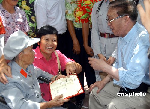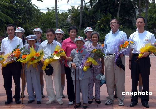 2007年6月26日,著名導(dǎo)演謝晉和演員牛犇代表劇組向紅色娘子軍老戰(zhàn)士王運(yùn)梅、陳振梅贈(zèng)送慰問(wèn)金、獎(jiǎng)?wù)潞妥C書。為慶祝中國(guó)人民解放軍建軍80周年,中央電視臺(tái)15集大型系列片《祖國(guó)不會(huì)忘記》劇組專程來(lái)到紅色娘子軍的故鄉(xiāng)海南瓊海市攝制有關(guān)專題。當(dāng)天中午,曾執(zhí)導(dǎo)故事片《紅色娘子軍》的著名導(dǎo)演謝晉和該片演員牛犇隨劇組來(lái)到紅色娘子軍紀(jì)念園再會(huì)娘子軍老戰(zhàn)士。中新社發(fā) 蒙鐘德 攝