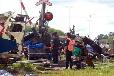 據(jù)阿根廷國家通訊社報道,一輛載有61名乘客和2名司機的長途客車從布宜諾斯艾利斯駛往馬德普拉塔,在布宜諾斯艾利斯以南約200公里的多洛雷斯鎮(zhèn)附近一鐵道路口被一列客車撞上。