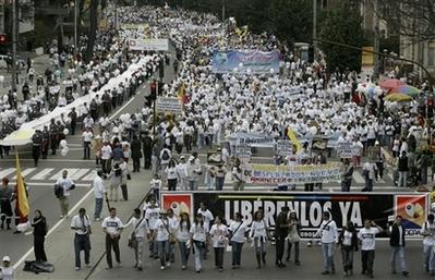 在哥倫比亞國慶節(jié),100多萬人在各地舉行游行,要求左派叛軍釋放手中人質(zhì)。