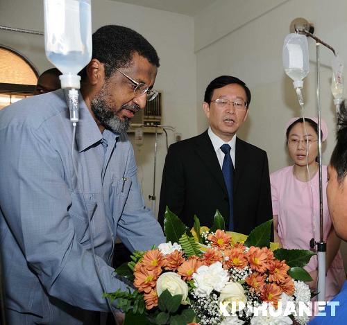 祖貝爾·哈桑當(dāng)天在中國(guó)駐蘇丹大使李成文的陪同下,到醫(yī)院探望了正在那里接受治療的4名獲救中國(guó)工人。他首先向獲救工人表示慰問(wèn),并希望他們?cè)缛湛祻?fù)。他還對(duì)另外5名中國(guó)工人在綁架事件中不幸遇害表示哀悼。