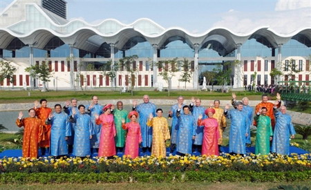 2006年APEC峰會時,領(lǐng)導人們穿上俗稱“奧黛”的越南服飾,女士的衣服看起來很像中國旗袍。