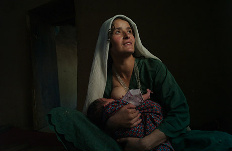 阿富汗艱難局勢中的母子。