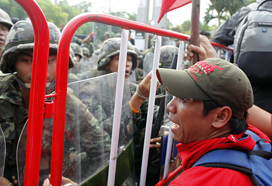泰國反獨(dú)裁民主聯(lián)盟支持者11日包圍了總理阿披實(shí)位于首都曼谷的住所。另外,至少數(shù)百名反獨(dú)聯(lián)示威者強(qiáng)行沖進(jìn)東盟系列峰會(huì)媒體中心。