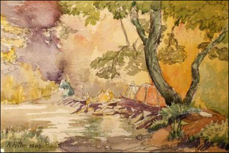 據(jù)當(dāng)?shù)孛襟w報(bào)道,在這些畫作中,有一幅據(jù)信是希特勒的自畫像,畫面中的男子身著棕色服裝,凝視著葡萄酒色的河水,畫作落款時(shí)間是1910年,簽名是希特勒的名字“A.Hitler”,而在畫中人物的身上則草寫著希特勒名字的縮寫“A.H.”。這幅畫以1萬英鎊拍出,買家稱打算將這幅畫掛在家中或辦公室里。