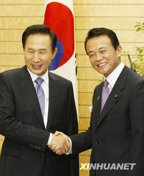李明博當(dāng)天上午抵達東京對日本進行為期一天的訪問。這次訪問是去年2月兩國領(lǐng)導(dǎo)人確定重開的“穿梭外交”(即兩國領(lǐng)導(dǎo)人每年互訪一次)的一環(huán)。麻生已于今年1月對韓國進行訪問。(記者劉贊)
