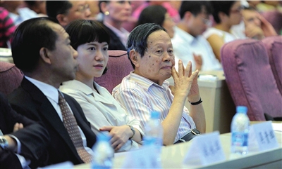 諾貝爾物理學(xué)獎獲得者、美國能源部部長、華裔,朱棣文的三重身份吸引了大批清華學(xué)子,諾獎得主楊振寧和夫人也到場旁聽捧場,能容納三百人的報告廳座無虛席,過道都站滿了慕名前來的同學(xué)。11點,朱棣文準(zhǔn)時現(xiàn)身,盡管天氣炎熱,他仍然正裝穿扮,白色襯衫、深色西裝、深色領(lǐng)帶。