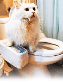 第4屆北京發(fā)明大賽參賽作品之一,可讓寵物在4至5周內(nèi)學(xué)會使用馬桶排便。發(fā)明者畢榮華制作出一個培訓(xùn)箱:在三層合一的座架上安裝帶有定位釘?shù)淖妫⒁粋帶有管塞和蓋板(或排架)的漏斗裝在座面上。培訓(xùn)過程中,逐漸加高座架、減少漏斗中的貓沙,加到第三層時與馬桶同高,最后將座面移到馬桶上并去掉漏斗,不再使用貓沙,這時貓咪就會習(xí)慣蹲坐在馬桶上排便。