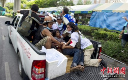 泰國軍方19日出動裝甲車、直升機以及1000名左右士兵,對在首都曼谷市中心商業(yè)區(qū)集結數(shù)月的反政府“紅衫軍”示威者發(fā)起清場行動。軍方?jīng)_破了“紅衫軍”所筑的路障,進入“紅衫軍”營地內,雙方爆發(fā)槍戰(zhàn)。除2人死亡外,目前至少有9人在沖突中受傷。