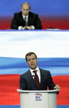 梅德韋杰夫在推舉他成為總統(tǒng)候選人會(huì)議代表投票后的統(tǒng)一俄羅斯黨會(huì)議上發(fā)言時(shí)說(shuō):“現(xiàn)在俄羅斯存在的這種機(jī)會(huì)是百年一遇才降臨到我們這個(gè)強(qiáng)大復(fù)雜的國(guó)家的。”