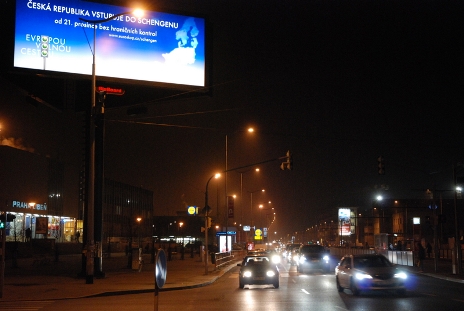 圖為捷克首都布拉格北面通向德國(guó)方向的交通要道一個(gè)路口上矗立的巨大廣告牌。設(shè)計(jì)者把捷文“穿行歐洲之路暢通無阻” 三個(gè)單詞中的字母“O” 巧妙地變成交通信號(hào)燈,而且三盞燈全是綠燈,喜悅之情躍然牌上。(黃頻)