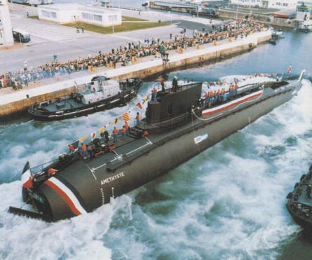 法國第一代戰(zhàn)略核潛艇“可畏”號下水儀式(資料圖)