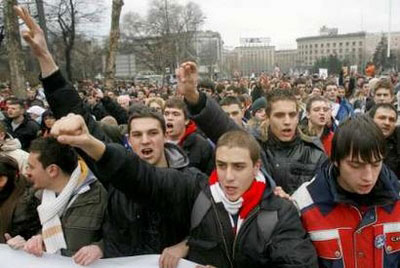 塞爾維亞首都貝爾格萊德各大院校的近萬名大學(xué)生18日中午聚集在市中心的共和國(guó)廣場(chǎng),舉行大規(guī)模游行集會(huì),抗議科索沃單方面宣布獨(dú)立。