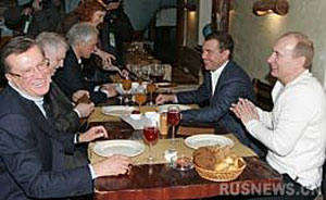 當(dāng)他們五個(gè)人在名為“遠(yuǎn)征”的飯店就座后,普京向擔(dān)任國(guó)家公職前曾多次參加地質(zhì)考察的米羅諾夫詢問(wèn)道:“您去過(guò)‘考察’多少年?”(在俄文中,“考察”和“遠(yuǎn)征”是同一個(gè)詞)。普京借此開(kāi)玩笑建議聽(tīng)取米羅諾夫的點(diǎn)菜經(jīng)驗(yàn)。在眾人的笑聲中米羅諾夫回答到:“18年,F(xiàn)在就開(kāi)始第19個(gè)年頭了!