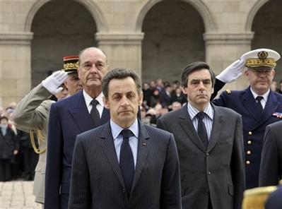 法國(guó)總統(tǒng)薩科齊和前總統(tǒng)希拉克出席葬禮。