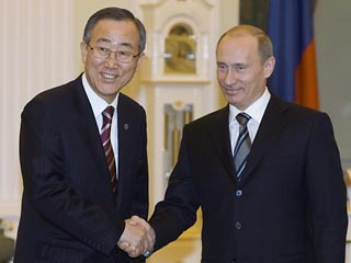俄羅斯總統(tǒng)普京與聯(lián)合國秘書長潘基文日前在克里姆林宮舉行會談,就聯(lián)合國及其安理會制度改革進行了討論。會上普京總統(tǒng)表示尊重聯(lián)合國對世界安全起到的關鍵作用,潘基文也表示俄羅斯在普京總統(tǒng)的領導下在世界占具了重要地位。但俄專家卻分析潘基文實際是“強顏歡笑”,因為很多重要問題的處理現(xiàn)在都已繞過聯(lián)合國,特別是繞過安理會,比如科索沃問題。