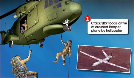 據(jù)報(bào)道,這架“死神”無人駕駛偵察機(jī)在此前執(zhí)行一項(xiàng)特別任務(wù)時(shí)墜落。英國(guó)皇家特種舟艇部隊(duì)(SBS)派出人員,乘直升機(jī)降落在偵察機(jī)墜落地點(diǎn)附近,將包括相機(jī)和電腦存儲(chǔ)器在內(nèi)的一些高機(jī)密儀器取走。
