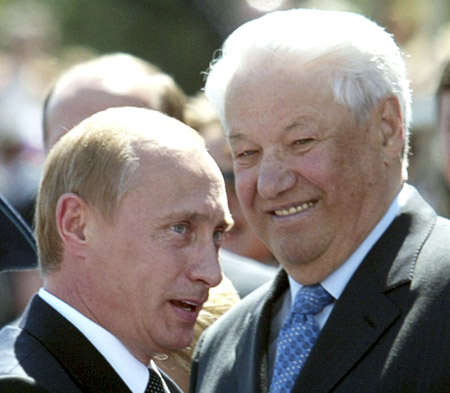 為紀(jì)念俄羅斯首任總統(tǒng)鮑里斯·葉利欽逝世一周年,4月23日,俄羅斯現(xiàn)任總統(tǒng)普京和當(dāng)選總統(tǒng)梅德韋杰夫親自前往葉利欽位于莫斯科新處女公墓的陵墓,出席墓碑安放儀式。普京還盛贊葉利欽為世界級(jí)杰出的政治家。