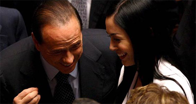 即使已經(jīng)71歲高齡,并正值意大利眾議院對(duì)他領(lǐng)導(dǎo)的新政府進(jìn)行信任投票,但在14日的議會(huì)演講中,貝盧斯科尼的注意力還是被兩名魅力四射的新進(jìn)者吸引。32歲的儂齊雅·德吉羅拉莫一頭黑發(fā),金發(fā)碧眼的加布里拉·吉曼科年僅31歲,上個(gè)月她們剛剛?cè)脒x眾議院。