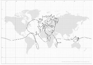 細(xì)的托運(yùn)路線和順序。55天之后,這個(gè)箱子在橫跨全球6個(gè)大洲62個(gè)國(guó)家后,順利回到了起點(diǎn)——斯德哥爾摩,全部行程約110664公里。然后,埃里克借助電腦將GPS記錄下的路線串聯(lián)起來(lái),繪出一幅“一筆劃的自畫像”。就在舉世驚嘆之際,他卻于日前在其官方網(wǎng)站上“不打自招”,所謂“自畫像”不過(guò)是他為完成畢業(yè)設(shè)計(jì)而虛構(gòu)出來(lái)的一場(chǎng)鬧。