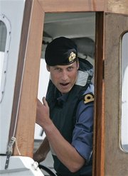 威廉王子在船上。