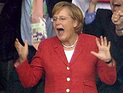 據(jù)德國(guó)《dcrs》網(wǎng)站6月16日?qǐng)?bào)道,周一晚開始的“德奧大戰(zhàn)”的吸引了大量觀眾,就連德國(guó)總理默克爾也親自率領(lǐng)6位重量級(jí)部長(zhǎng)到維也納為國(guó)家隊(duì)吶喊助威。隨行的是外交部長(zhǎng)施泰因邁爾、內(nèi)政部長(zhǎng)朔伊布勒、國(guó)防部長(zhǎng)約瑟夫、建設(shè)部長(zhǎng)蒂芬澤、環(huán)境部長(zhǎng)加布里爾和財(cái)政部長(zhǎng)施泰因布呂克。這一強(qiáng)大的“政界后援團(tuán)”親臨現(xiàn)場(chǎng)觀戰(zhàn),而為他們埋單的德國(guó)的納稅人卻只能守在家里的電視機(jī)前啃著面包看比賽。