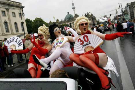 據(jù)報(bào)道,在德國首都柏林和法國首都巴黎分別都有50萬人參加了“同性戀者驕傲大游行”。游行聲勢盛大但氣氛平和,沒有騷亂和沖突的報(bào)道。