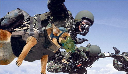 英軍已訓(xùn)練德國牧羊犬從高度7500米的飛機上跳下,它們將戴著特制氧氣罩和特別空勤團隊員一同傘降。制訂這一令人驚訝?wèi)?zhàn)術(shù)的目的是降低特別空勤團的高傷亡率。在過去2年里,已有3名英軍特別空勤團隊員在伊拉克進行的突襲行動中陣亡,另有8名隊員受重傷。