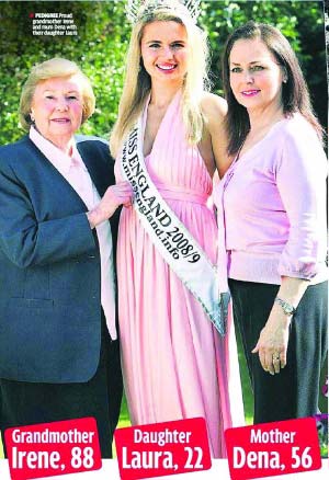 現(xiàn)年22歲的英國女孩勞拉·科爾曼在“英國小姐”選美大賽中擊敗其他49名決賽佳麗,一舉奪得了“英國小姐”的桂冠。然而鮮為人知的是,勞拉其實來自一個英國“選美世家”,她的外婆愛琳、母親迪娜都曾經當選過英國各個選美大賽中的“選美皇后”!