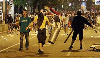 29日晚的抗議集會吸引約2萬人,這一人數(shù)比組織者所希望的少。100名據(jù)信是貝爾格萊德紅星足球俱樂部支持者隨后離開抗議集會人群,他們向防暴警察扔磚頭、炮竹,警方則用催淚彈和橡皮子彈進(jìn)行反擊。貝爾格萊德市中心很快變成一個垃圾場,街上到處都是玻璃和其它垃圾,40余人在沖突中受傷,其中包括一名西班牙攝影師。