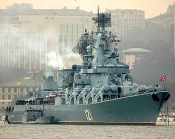 俄黑海艦隊(duì)旗艦?zāi)箍铺?hào)巡洋艦(資料圖片)