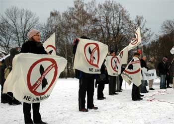 中新網(wǎng)布拉格1月8日電 一小組反對美國在捷克建立中歐導(dǎo)彈防御系統(tǒng)的雷達基地民間組織的成員7日在歐盟委員會和捷克政府官員會面的布拉格列支敦士登宮外冒著零下6度的嚴寒舉行示威,抗議政府同意建立美軍基地。