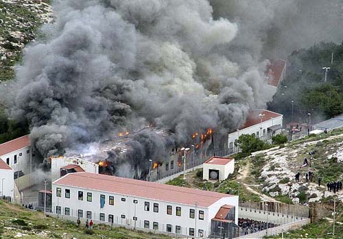 意大利發(fā)生非法移民逃跑失敗焚燒收容所事件(圖)