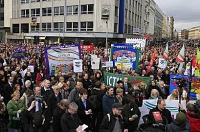 據(jù)英國(guó)媒體報(bào)道,集會(huì)活動(dòng)由“聯(lián)合”工會(huì)組織發(fā)起,除貝爾法斯特外,倫敦德里、紐里、唐帕特里克、利斯本等地也同時(shí)舉行。