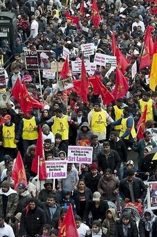 參加示威的主要是居住在英國的泰米爾人,以及他們的支持者。示威者要求英 國停止向斯里蘭卡繼續(xù)提供援助。
