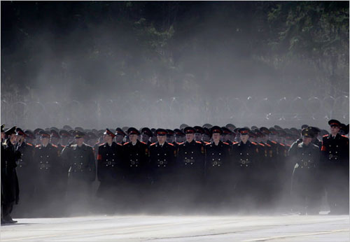 據(jù)報(bào)道,今年的紅場閱兵式分為三個(gè)階段,先是傳統(tǒng)的國防部長檢閱,在國家元首下達(dá)檢閱開始的命令后,由4000名官兵,代表著衛(wèi)國戰(zhàn)爭中十個(gè)戰(zhàn)線、四十五個(gè)參戰(zhàn)的英雄部隊(duì)組成方隊(duì),正步走過紅場接受檢閱;此后是武器檢閱,最后是空軍部隊(duì)出動(dòng)的各式戰(zhàn)機(jī),飛越紅場上空。