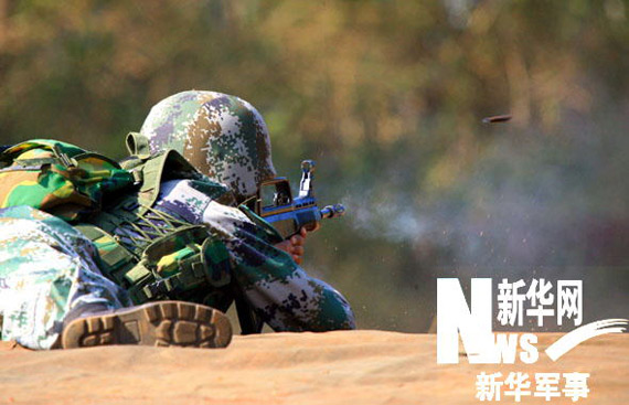 中國(guó)士兵正在進(jìn)行百米胸環(huán)靶射擊 [新華社記者 李剛 攝]