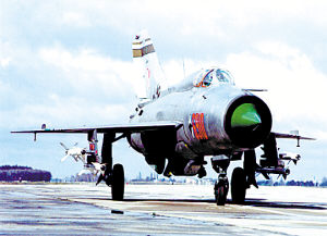 新聞背景 據(jù)美聯(lián)社報道,2008年底,作為冷戰(zhàn)的一個象征,在與蘇聯(lián)的主要對手——北約的對抗前線服役了50年后,米格-21戰(zhàn)機行將退役。英國專業(yè)刊物《空軍月刊》的編輯阿倫·沃恩斯評論:“在第二次世界大戰(zhàn)之后的歐洲,沒有任何一種飛機能像米格-21那樣,對軍事航空領(lǐng)域產(chǎn)生那么深遠的影響”。