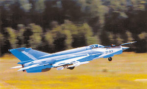 米格-21是根據(jù)朝鮮戰(zhàn)爭中噴氣戰(zhàn)斗機的空戰(zhàn)經(jīng)驗研制而成,其飛行速度為2馬赫——聲速的2倍,輕巧靈活。