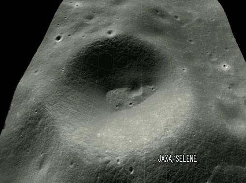 該畫像拍攝的區(qū)域為月球背面北緯60至66度附近、寬約16公里、長約180公里的范圍,從中可見直徑約為60公里的“DYSON”隕石坑,還可看見附近的稍小一隕石坑內側存在著更多的小型隕石坑。在南極附近拍下的圖像中,也可發(fā)現(xiàn)有許多隕石坑。
