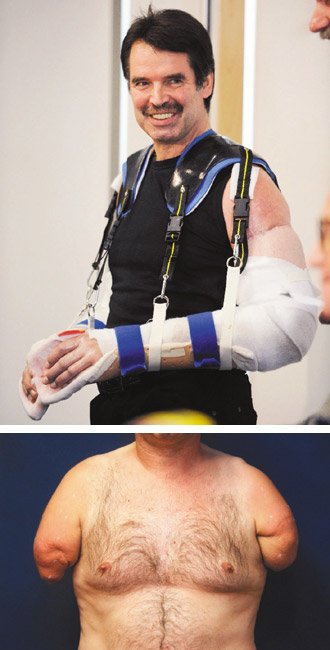 默克展示自己的雙臂高興地說(shuō),難以形容再度完整的感覺(jué):“我的機(jī)動(dòng)性每天不斷增加”。默克的療程仍在持續(xù)進(jìn)行,雙臂目前用一件特殊的“緊身衣”支撐著。