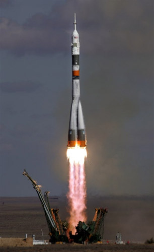 中新社莫斯科十月十二日電 (記者 田冰)莫斯科時(shí)間十月十二日十一時(shí)零一分,俄羅斯“聯(lián)盟TMA - 十三”載人飛船從哈薩克斯坦境內(nèi)的拜科努爾航天發(fā)射場升空,飛向國際空間站。