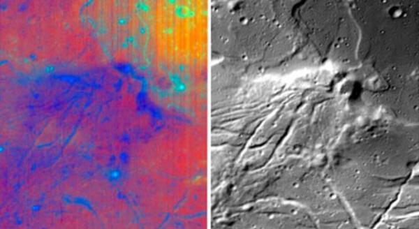 此圖是由該飛船裝配的美國宇航局月球礦物質(zhì)繪圖儀拍攝。月球礦物質(zhì)繪圖儀是"月球初航1號"首個提供月球表面高清晰度圖像的儀器,其所拍攝的這張彩色圖像不僅具備傳統(tǒng)二維圖像的長和寬,還通過顏色呈現(xiàn)其空間尺度。這種彩色是由28種不同波長的光線從月球上反射形成的。其中,從藍(lán)色至紅色揭示了巖石和礦物成份的變化,綠色則代表像輝石這樣含鐵豐富的礦石。黑白圖像是單個波長的光線所獲得的圖像,可以重新認(rèn)識這一月球表面區(qū)域的結(jié)構(gòu)和形成。