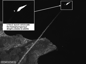 總部在華盛頓的科學(xué)與國際安全研究所(TheInstitute for Science and International Security)公布了Digital Globe拍攝的衛(wèi)星照片,顯示從火箭燃燒的推進(jìn)劑噴出的羽流和火焰。