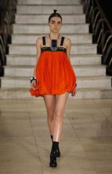 朱利安•麥當(dāng)勞就表示,這場時裝秀設(shè)計重點是以軟毛無光澤與光澤和玻璃碎片來營造都市時尚感。而另外一位以簡約摩登著稱的英國設(shè)計師杰斯波•康蘭則是以黑色基調(diào)貫穿全場,在歌劇卡門的音樂下,一位位模特兒以馬甲修飾身材曲線,充滿復(fù)古風(fēng)情。杰斯波•康蘭說,大量使用黑色的靈感來自X光線,而外部堅挺內(nèi)部卻又柔軟的展現(xiàn),讓女性同時展現(xiàn)性感、調(diào)皮與自信。