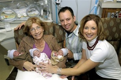 手術(shù)過程很簡單,金和喬通過人工受精獲得胚胎,醫(yī)生再將胚胎放到杰西的子宮里。但是56歲懷孕,是不是太危險?杰西說,在這個年紀(jì)懷孕,她一點也不害怕!拔乙恢焙芙】,受孕前還進行了必要的體檢和測試。當(dāng)我們得知是三胞胎時,我確實緊張了三四天,但很快就不擔(dān)心了”。