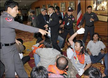 據(jù)新加坡《聯(lián)合早報》報道,由前參議員宗黃帕功帶領(lǐng)的1500名工會分子、學(xué)生和政治活躍人士闖入國會大廈,其中百約人趁保安人員沒留意,溜進(jìn)大廈直闖會議廳,導(dǎo)致開會的議員不得不休會。示威者說,隨著大選即將在兩周后(23日)舉行,現(xiàn)任國會已經(jīng)無權(quán)立法。