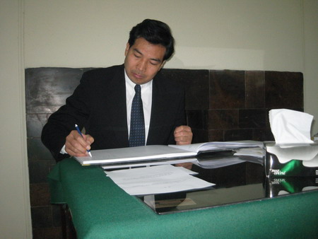 羅照輝在靈堂向貝·布托遺像敬獻了花圈,并在吊唁簿上留言。