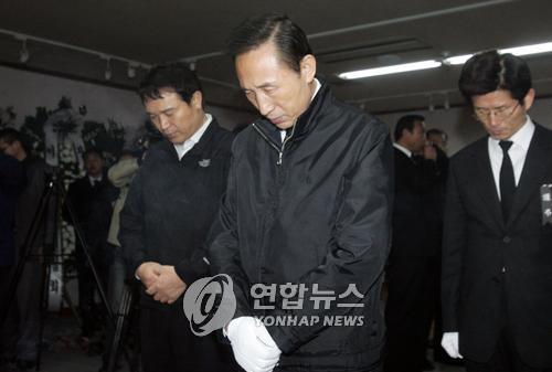 韓總統(tǒng)當選人李明博慰問冷庫爆炸遇難者家屬(圖)