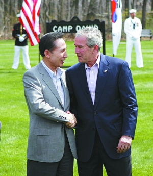 美國東部時(shí)間19日,韓國總統(tǒng)李明博與美國總統(tǒng)布什商定,在普遍價(jià)值與堅(jiān)固的信任基礎(chǔ)之上,將兩國關(guān)系提升至“21世紀(jì)戰(zhàn)略同盟關(guān)系”。